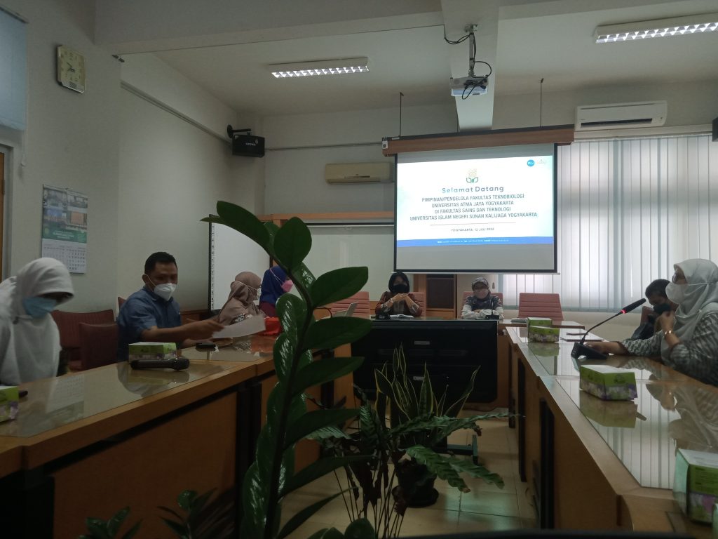 Fakultas Teknobiologi Universitas Atma Jaya Yogyakarta melaksanakan benchmarking penjaminan mutu dengan Fakultas Sains dan Teknologi UIN Sunan Kalijaga Yogyakarta pada hari Selasa, 12 Juli 2022 pukul 9.30-11.30 di Fakultas Sains dan Teknologi UIN Sunan Kalijaga secara luring. Diskusi ini dihadiri oleh Dekan Fakultas Sains dan Teknologi, Ibu Dr. Dra. Hj. Khurul Wardati, M.Si. beserta jajaran dekanat, Wakil Dekan I Ibu Dr. Sofwatul ‘Uyun, S.T., M.Kom., Wakil Dekan II Ibu Dr. Arifah Khusnuryani, S.Si., M.Si., dan Wakil Dekan III Bapak Dr. Fathorrahman, S.Ag., M.Si. Ketua Prodi dari Prodi-prodi di bawah Fakultas Sains dan Teknologi, Pengendali Sistem Mutu Fakultas (PSMF), dan Pengendali Sistem Mutu Prodi (PSMP) serta Dekan Fakultas Teknobiologi UAJY, Ibu Dr. Dra. Exsyupransia Mursyanti, M.Si, Wakil Dekan I Ibu LM Ekawati Purwijantiningsih, S.Si., M.Si, Wakil Dekan II Ibu Dra. L. Indah Murwani, M.Si, Kepala Prodi Bapak Drs. Boy Rahardjo S, M.Sc, dan Tim Penjaminan Mutu Fakultas. Kegiatan ini bertujuan untuk sharing praktik baik dalam penjaminan mutu internal sehingga tercapai peningkatan mutu yang berkelanjutan.