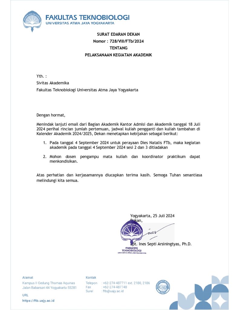 Edaran Dekan Tentang Kegiatan Akademik Tanggal 4 September 2024