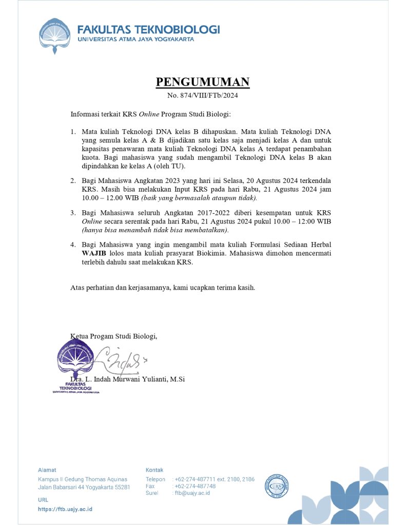 Informasi Tambahan Terkait KRS Online Program Studi Biologi