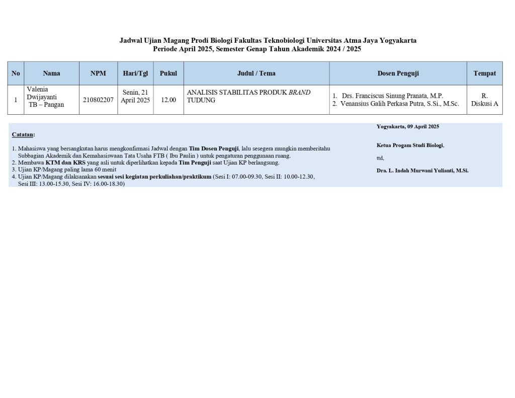 Jadwal Ujian Kerja Praktik-Magang Bulan April 2025