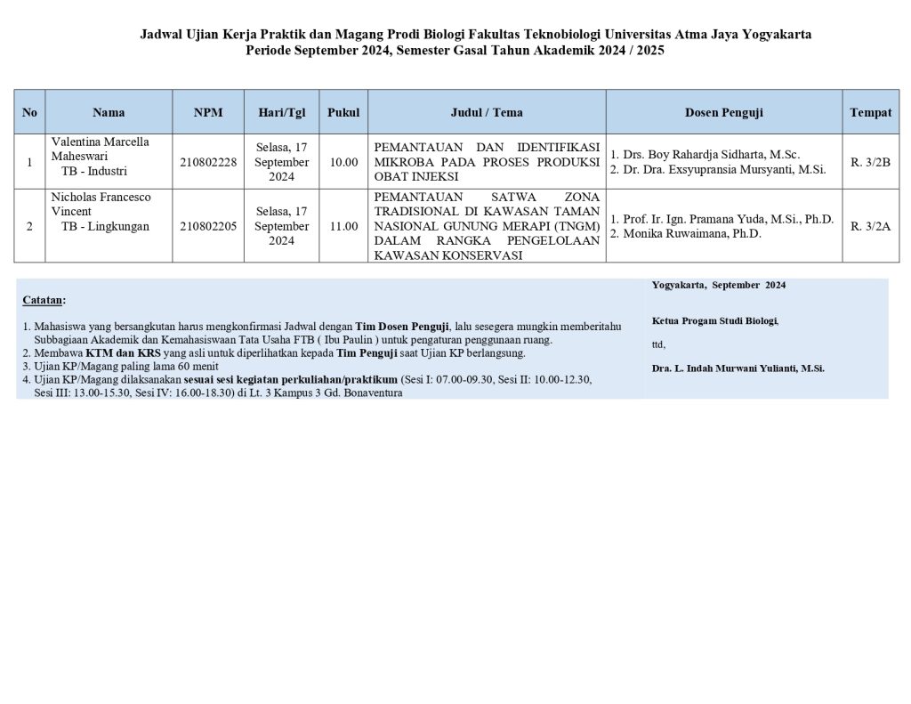 Jadwal Ujian Kerja Praktik-Magang September 2024
