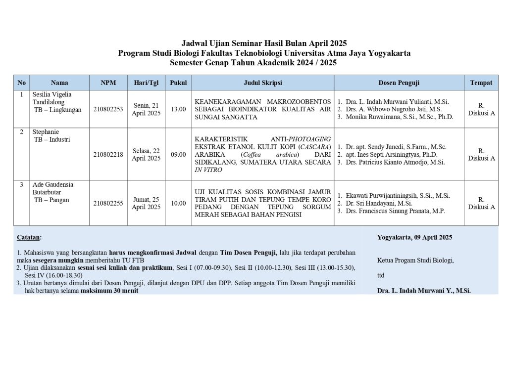 Jadwal Ujian Seminar Hasil Bulan April 2025