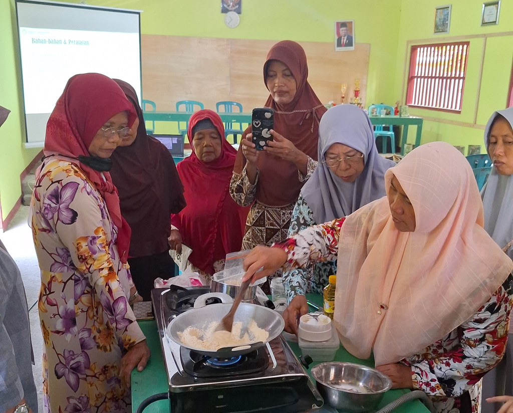 Pada akhir acara, para peserta dibagikan hasil praktik pembuatan tepung pisang sangrai dan selai kacang serta dipersilahkan untuk berinovasi memanfaatkan bahan-bahan tersebut menjadi berbagai macam produk seperti bolu, kue, bubur, dan sebagainya. Produk-produk kreatif yang dihasilkan akan menjadi bagian dari rencana pengembangan dan pemasaran produk di kegiatan pengabdian berikutnya. Kegiatan ini tidak sekedar memberikan pengetahuan dan keterampilan, tetapi juga mendorong kreativitas dan partisipasi aktif masyarakat dalam mengembangkan potensi lokal di sekitar mereka.