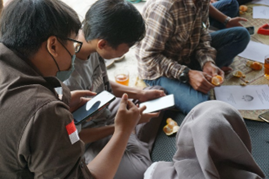(Foto pendampingan oleh mahasiswa pada Pelatihan iNaturalist di TNGM Merapi)
