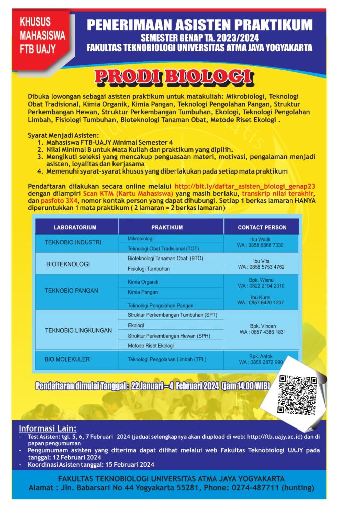 Penerimaan Asisten Praktikum Prodi Biologi Semester Genap 2023-2024