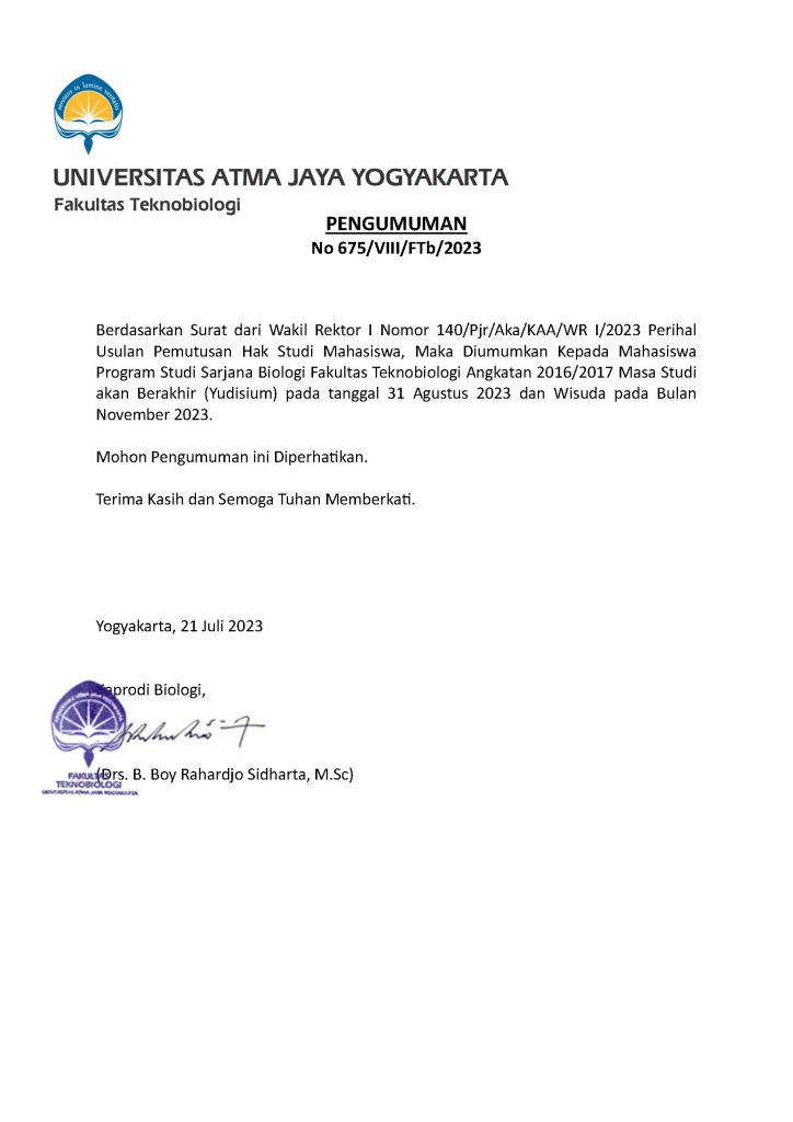 Pengumuman Pendaftaran Asisten Praktikum Fakultas Teknobiologi