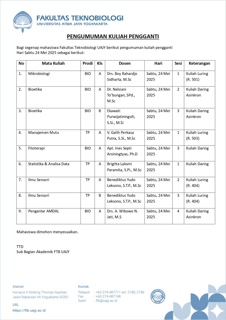 Pengumuman Kuliah Pengganti 24 Mei 2025