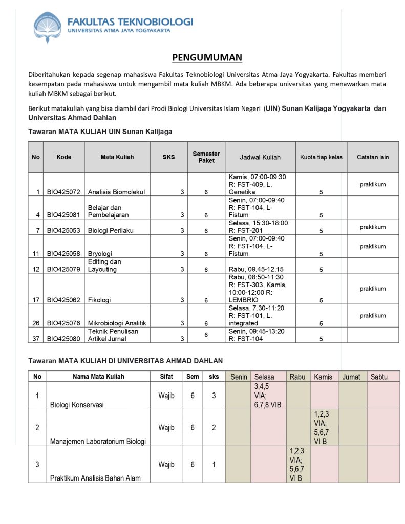 Pengumuman Mata Kuliah MBKM dari UAD dan UIN