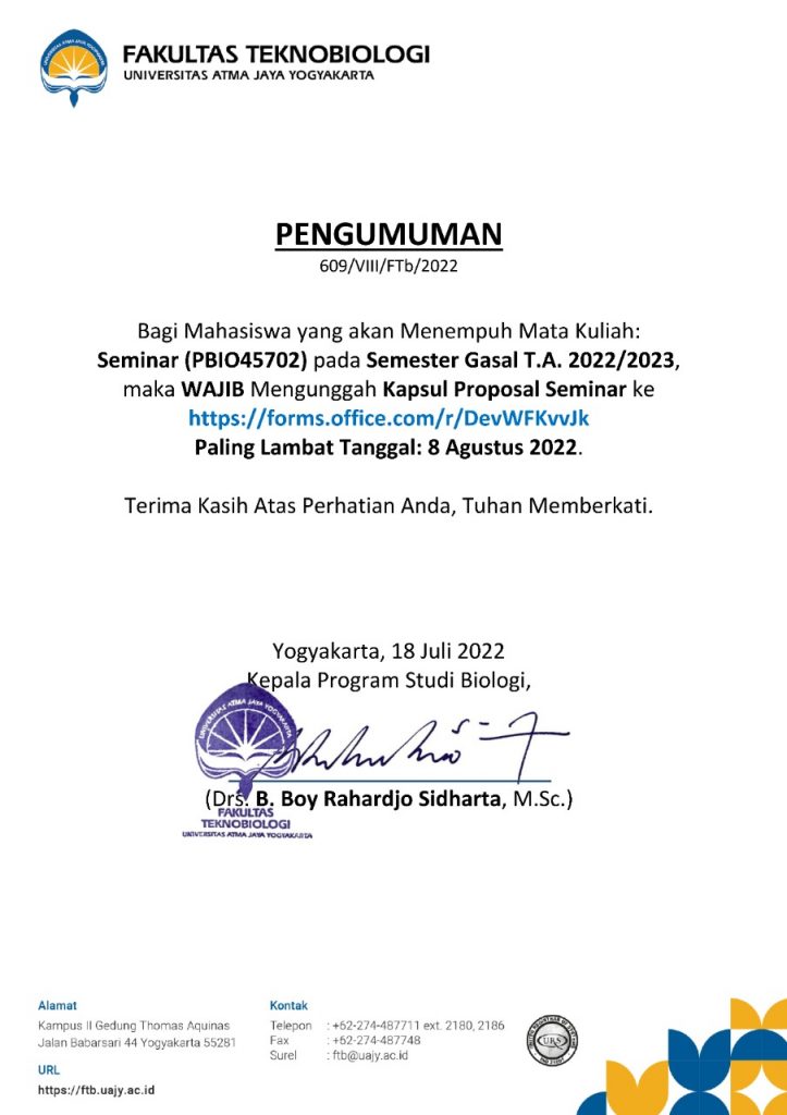 Pengumuman Matakuliah Seminar Semester Gasal 2022/2023