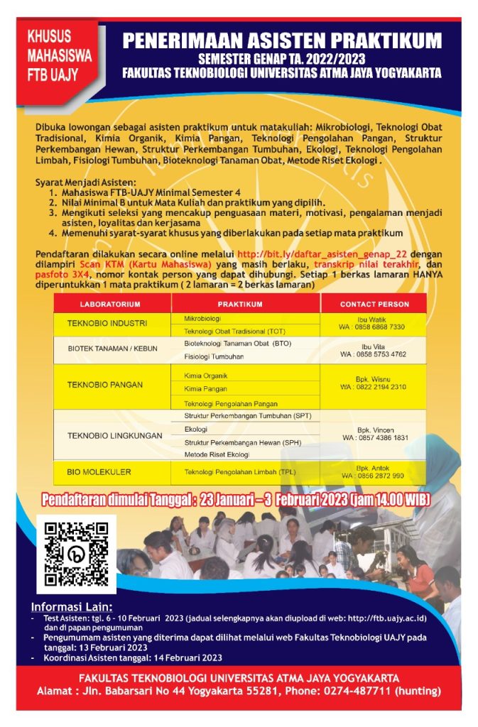 Pengumuman Pendaftaran Asisten Praktikum Semester Genap 2022/2023