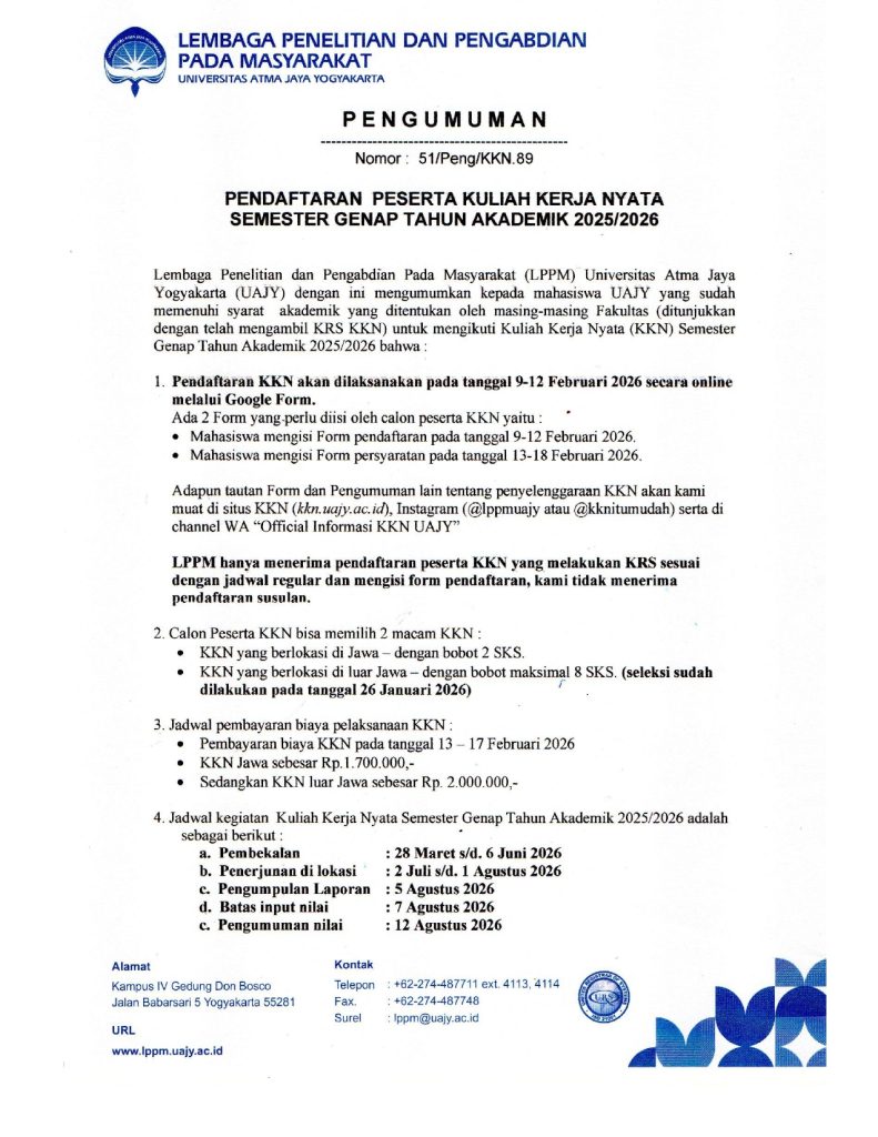 Pengumuman KRS Skripsi Semester Genap TA 2025-2026