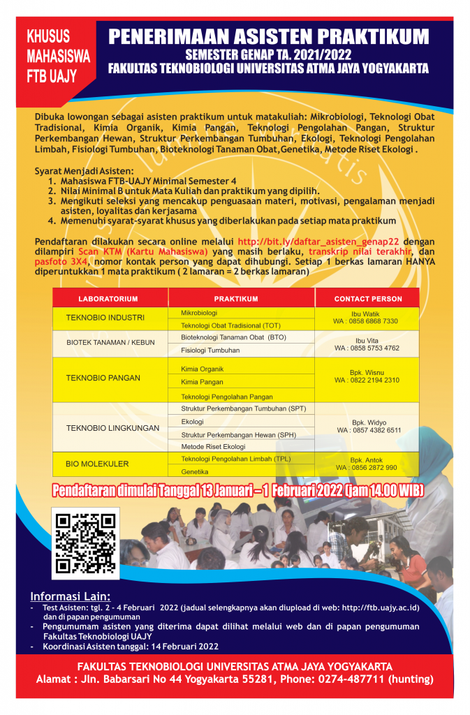 Pengumuman Penerimaan Asisten Semester Genap TA. 2021/2022