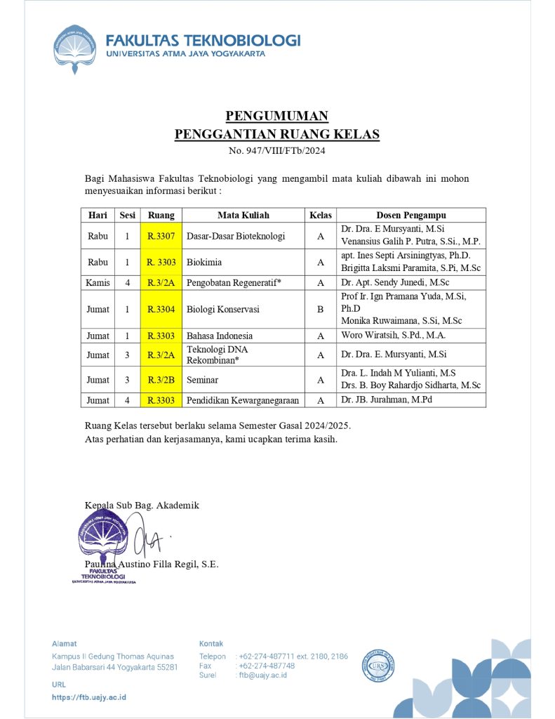 Pengumuman Penggantian Ruang Kuliah