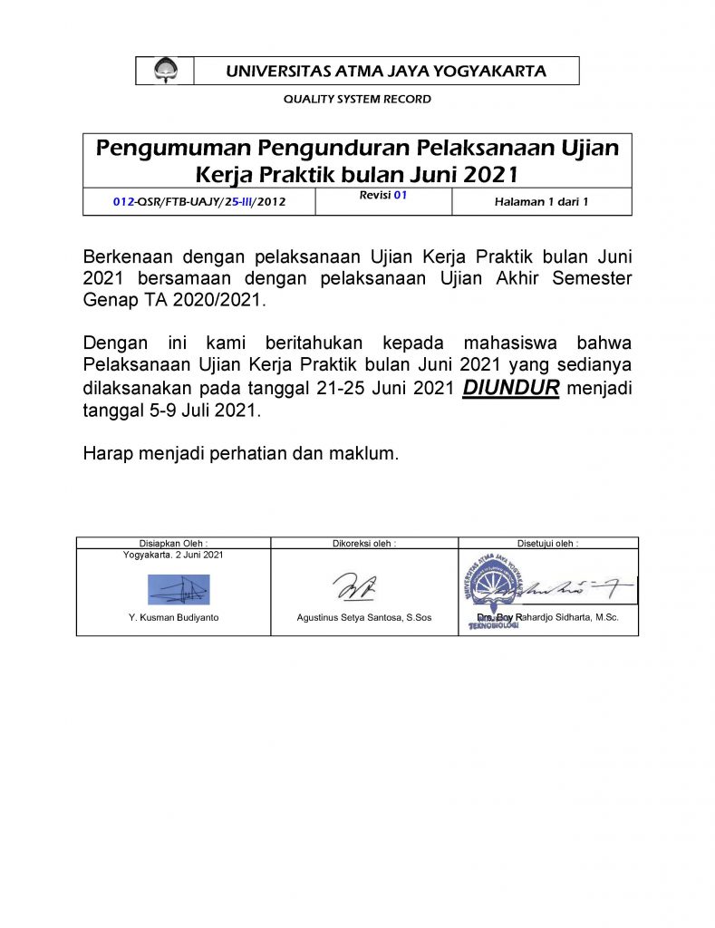 Pengumuman penguduran pelaksanaan Ujian KP juni 2021