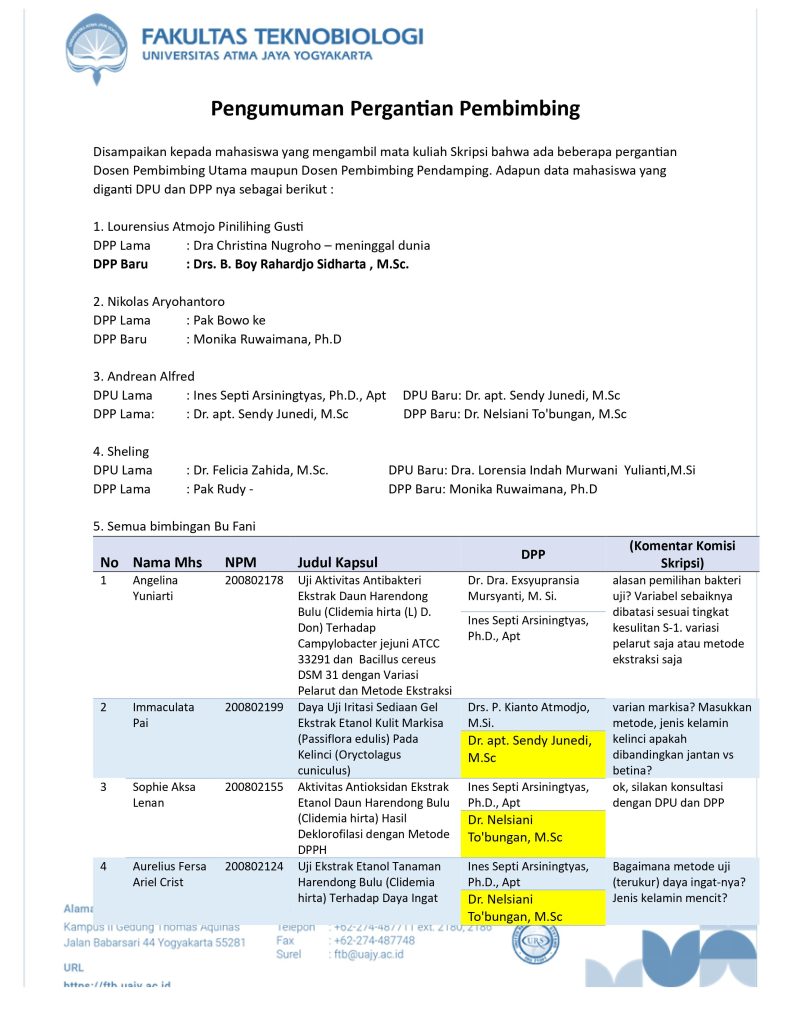 Pengumuman Pergantian Dosen Pembimbing Utama dan Pendamping DPU DPP