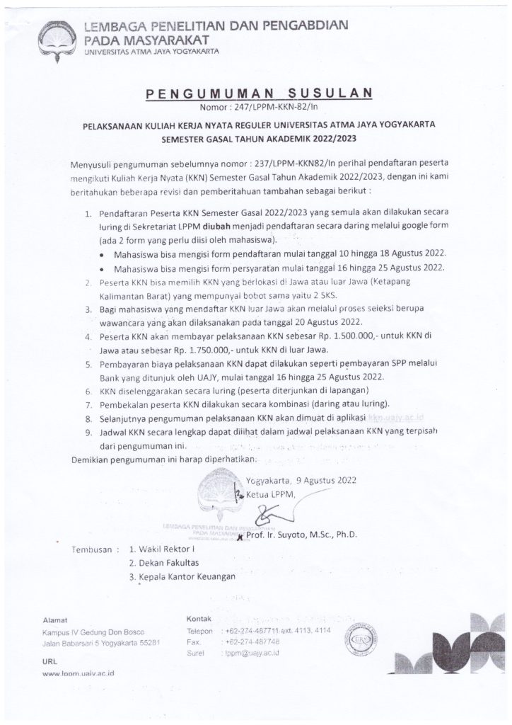 Pengumuman Susulan KKN Reguler Semester Gasal TA. 2022/2023