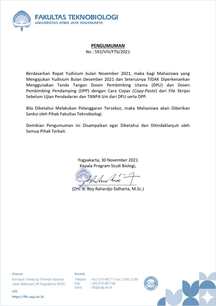 Pengumuman tentang Penggunaan Tanda Tangan Dosen