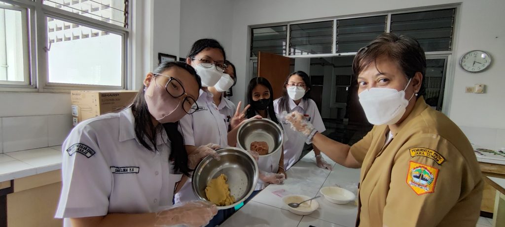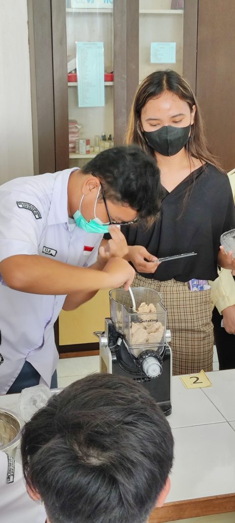 Sebelum praktik, peserta diberi penjelasan mengenai latar belakang pengembangan produk dan cara pengolahannya. Selama pembuatan produk, peserta dengan antusias mengajukan berbagai pertanyaan mengenai produk pangan yang dibuat. Setelah produk jadi, para peserta didik dapat mencicipi produk yang mereka buat.