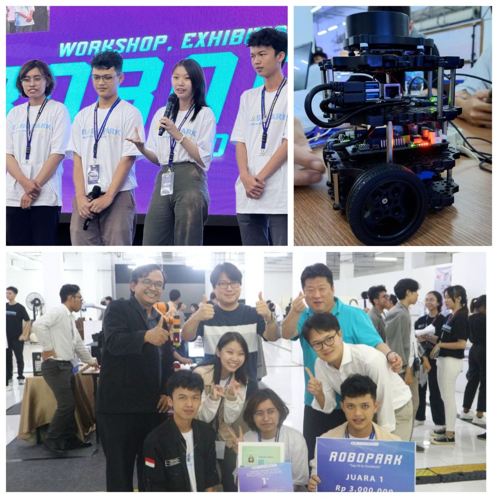 Motivasi saya mengikuti lomba adalah menambah ilmu, mendapat pengalaman baru dan mengenal orang baru. Kelompok kami bernama ADP (Ajarin Dong Puh) yang beranggotakan dari beda fakultas yaitu Fakultas Teknobiologi, Fakultas Teknik, dan Fakultas Teknologi Industri. Kak Haga menyampaikan bahwa kemarin sebelum mengikuti acara RoboPark beliau sedang mengerjakan proyek teman lalu ditawarin ikut Robopark, karena kebetulan jadwal kelas kosong jadinya ikut dan ternyata tim ADP mendapat juara 1, ada Sharon yang menyampaikan bahwa kemarin ikut RoboPark karena penasaran dengan implementasi SLAM (Simultaneous localization and mapping) dari turtlebot yang beliau lihat di guidebook, kemudian ada Kak Wirja yang juga sama penasaran ingin mengikuti RoboPark. Harapan kami semoga kedepannya dapat juara dalam lomba robotik baik nasional maupun internasional.